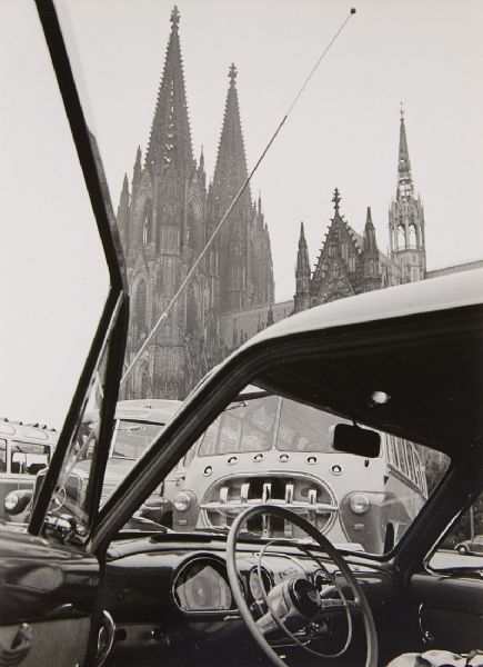 | Reiseomnibus an der Südseite des Domes. St. Aposteln vom Neumarkt aus gesehen | |