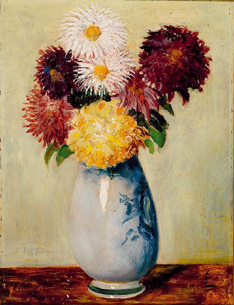 Suresnes/Seine, war ansässig in Paris, Stilleben mit Dahlien