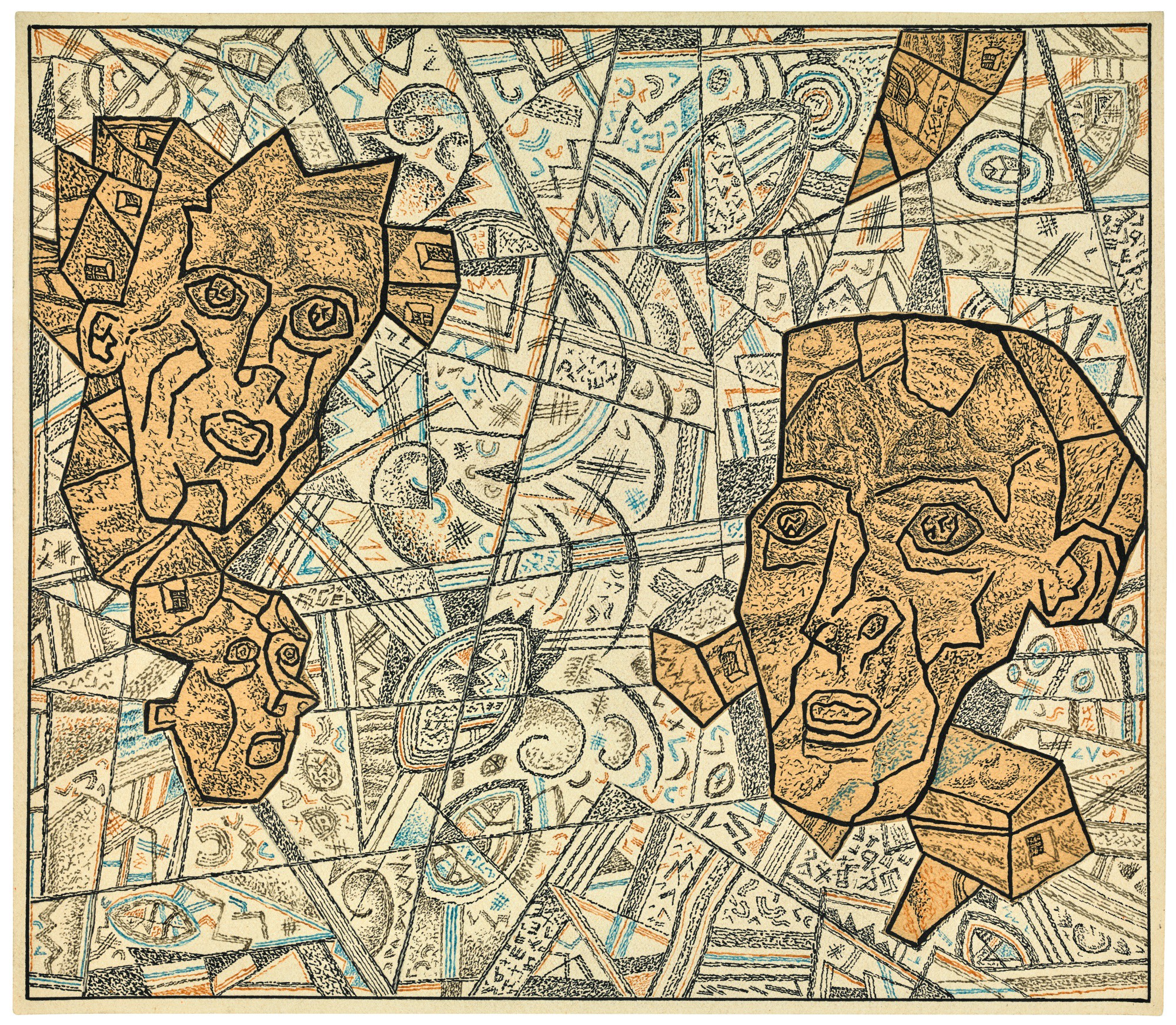 Ink watercolour and collage on paper