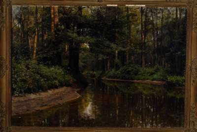 Bachlauf im Wald, im Hintergrund ein Flösser