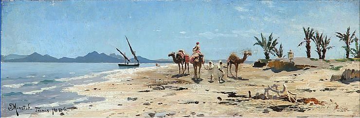 | Coastal scene from Tunis with Arabs and their dromedaries | |