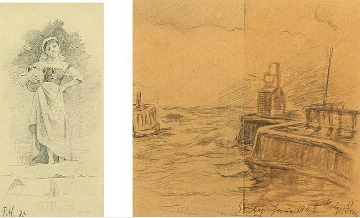 Italian girl with a jar and Harbour scenery from Sæby