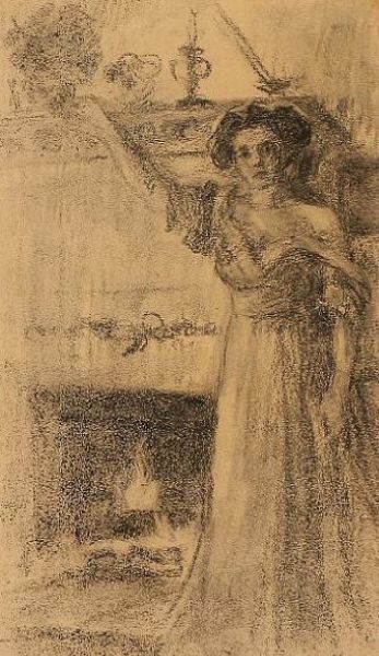 Ung Dame ved kamin