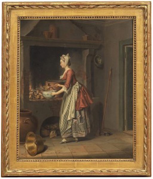| En piga höser såppa utur en kiettel - i en skål | |