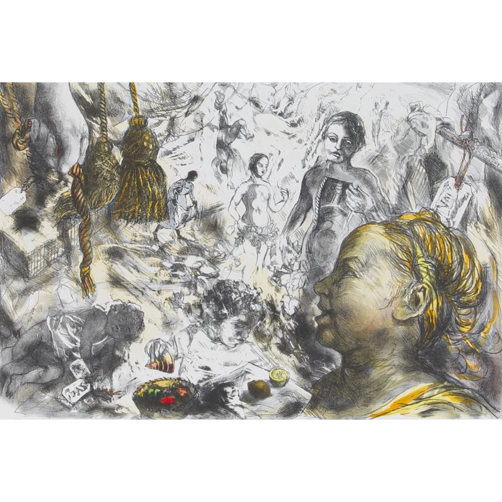 image size: 28 by 41cm; sheet size: 50,5 by 65,5cm; 97 by 106 by 5cm including frame, inscribed with the title, numbered 22/35 in pencil in the margin and embossed with the Caversham Press chop mark | |