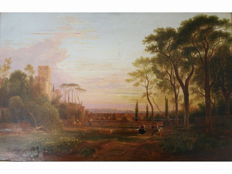FIGURES IN AN ITALIAN GARDEN AT EVENING