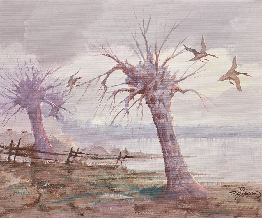 Landskap med fåglar