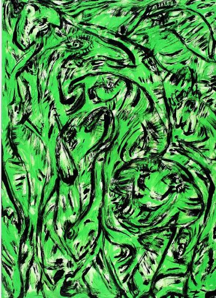 Figure composition in green and black.