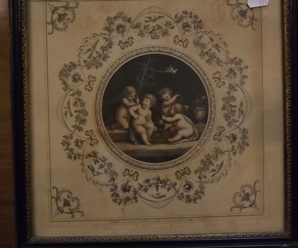 group of three 18th century hand coloured engravings of cherubs