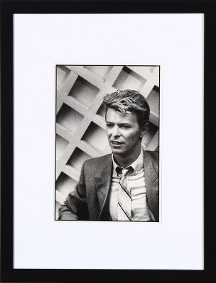 | An original black-and-white portrait photograph of the British musician David Bowie (1947–2016) from his Moonlight Period (ca. 1 | |