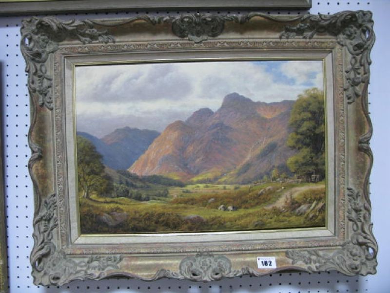 Sheep grazing within mountain landscape