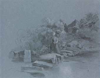 | A woman on stepping stones crossing a stream (recto) and Study of an extensive landscape (verso) | |