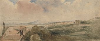 | Figures promenading on a terrace overlooking an extensive continental landscape | |
