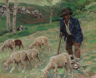 An Itialian shepherd wit his flock