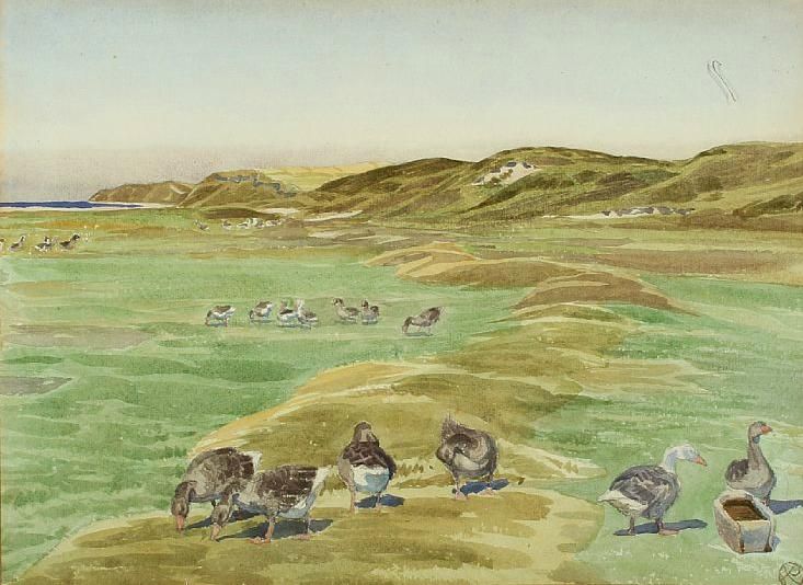 Coastal scenery with geese