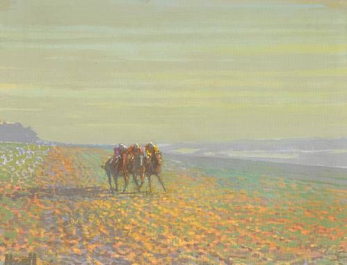 Horses working on Marlborough Downs, Wiltshire