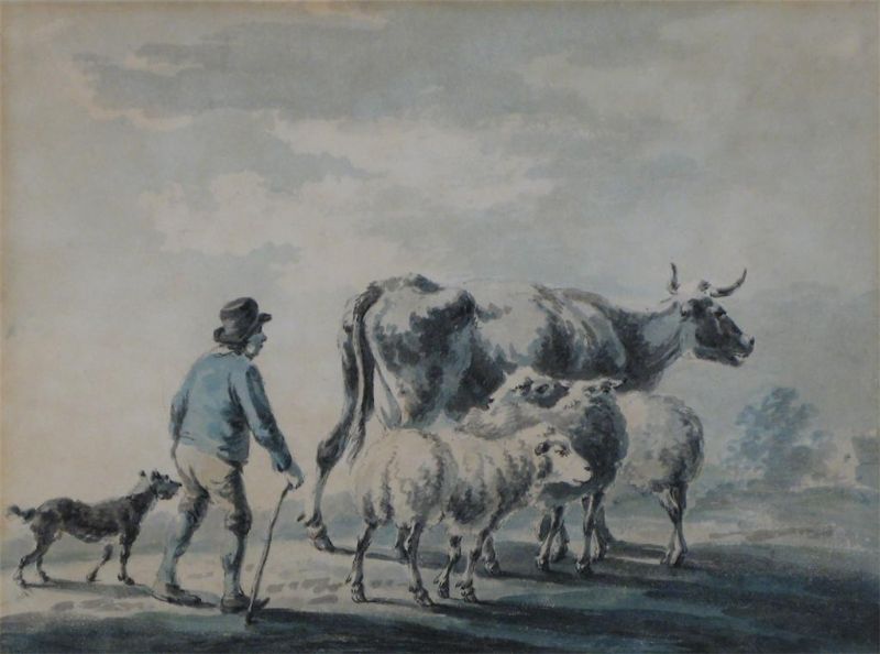 A Herdsman, cows and sheep