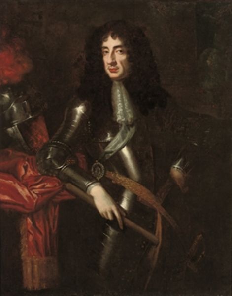 | Portrait of King Charles II (1630-1685), three-quarter-length, in armour, a baton in his right hand, wearing the ribbon of the g | |