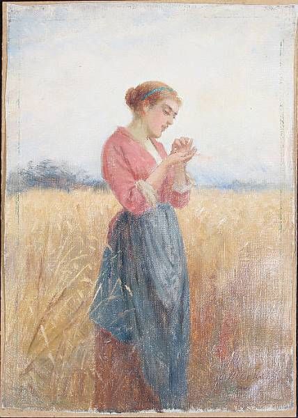 Girl blowing chaff from a handful of wheat