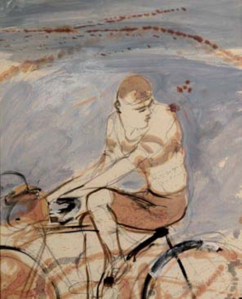 Cyclist looking back