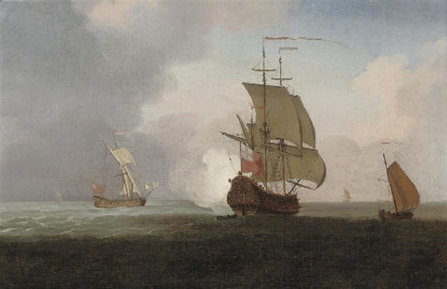 | A two-decker announcing her arrival at the anchorage, with an Admiralty | |