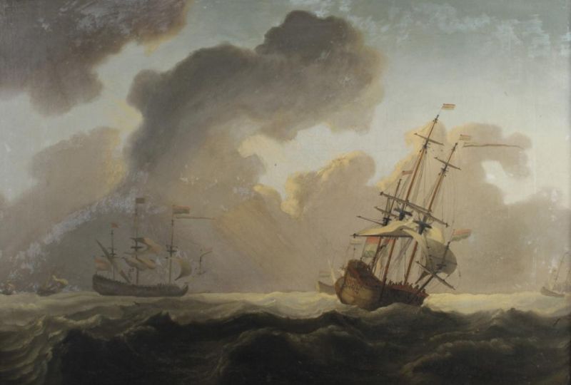 | A squadron of the Dutch fleet running under shortened sail and labouring in heavy weather | |