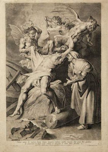 | Homo natus de muliere... Job tourmenté par les démons et moqué par sa femme. | |