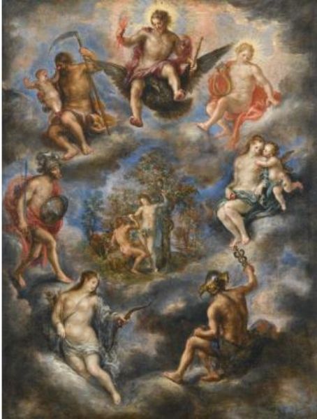 THE FALL OF MAN WITH A SURROUND OF SEVEN GREEK GODS