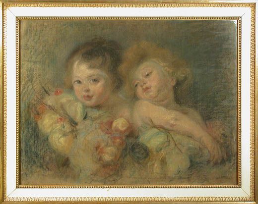 Zwei Amoretten mit Früchtearrangements