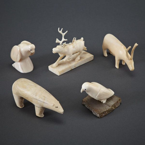 GROUP OF FIVE ARCTIC ANIMAL MINIATURES