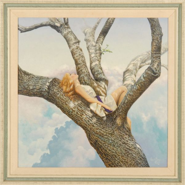 A young woman rests in a tree