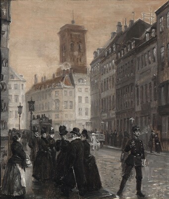 | View from Amagertorv looking towards Store Kirkestræde and Nikolaj Church | |
