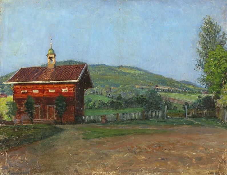 Norwegian landscape with cottage