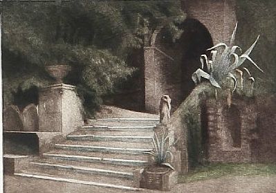 From the garden in Villa DEste and Girl sewing in an Italian Villa