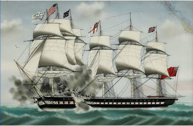 | The naval battle between "H.M.S. Shannon" and the "U.S.S. Chesapeake" in 1813 at Boston Harbour | |