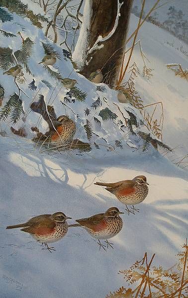 Field Fares and Gold Crests in the snow.