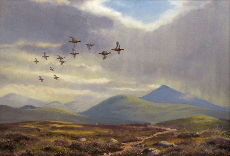 GROUSE OVER A MOOR; DRIVEN GROUSE