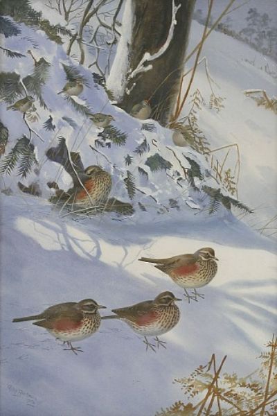 REDWINGS AND FIRECRESTS IN THE SNOW