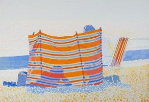 Beach scene with windbreak