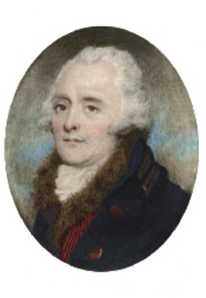 Painting gilt-metal frame with glazed reverse with brown silk lining oval