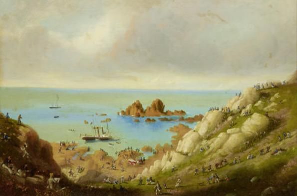 The wreck of the Channel Islands' packet steamer Express in St. Brelade's Bay, Jersey
