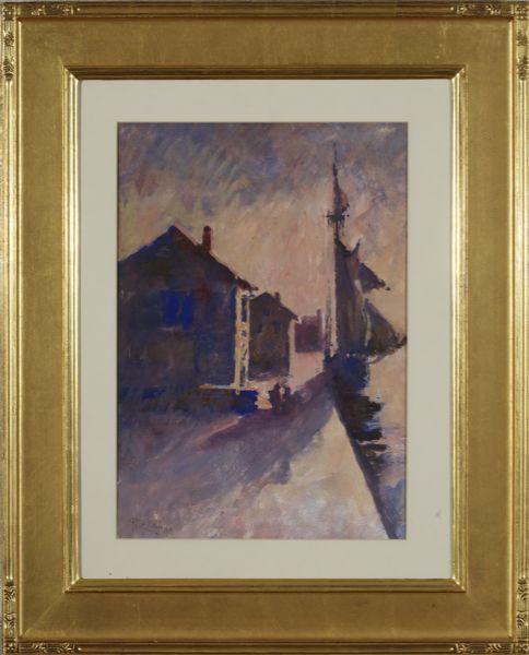 IMPRESSIONIST VIEW OF A BOAT AT HARBORSIDE