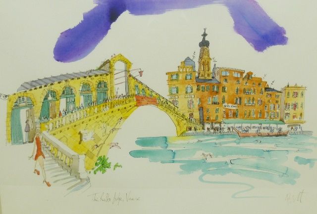 A pair of impressionist views of Venice with the Rialto and Campanile