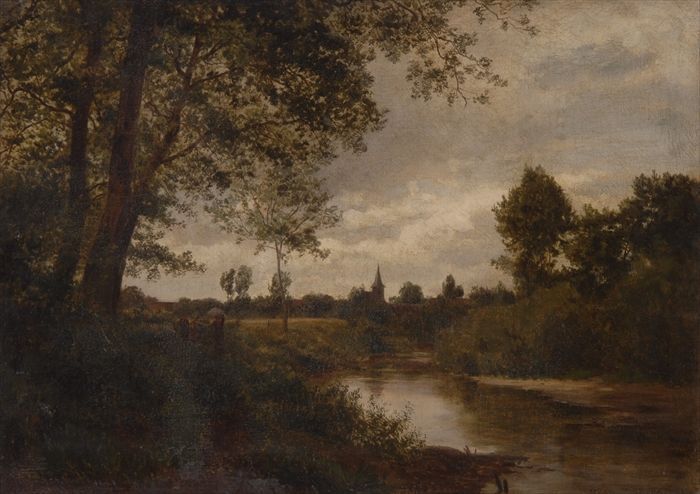LANDSCAPE WITH RIVER AND DISTANT STEEPLE