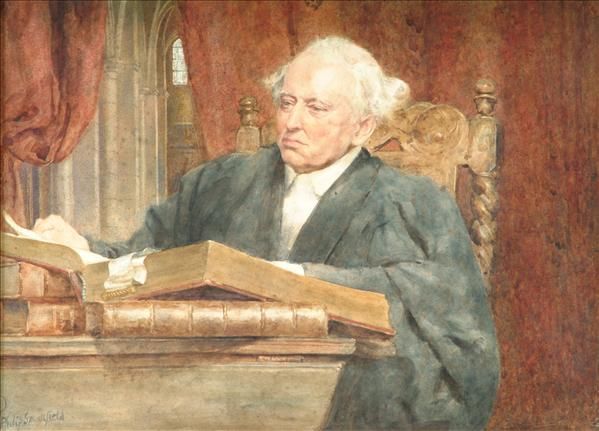 Portrait of a lawyer Half length seated at a desk