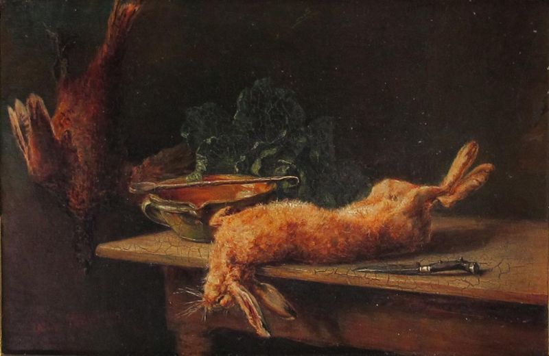 Nature morte mit Hase, Fasan, irdener Schüssel und Wirsing