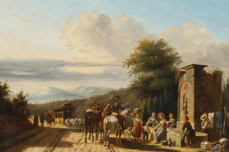 | Travellers by the roadside; together with a painting of a similar subject (a pair) | |