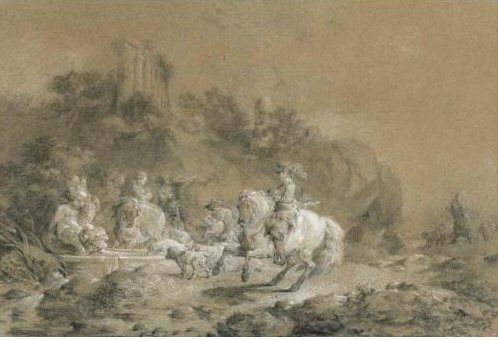 | A LANDSCAPE WITH RIDERS NEAR A FOUNTAIN | |