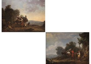 Landschaften mit Personenstaffage, Pferd und Eseln