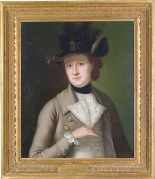 Portrait of an elegant lady in a travelling costume and a fur-trimmed hat